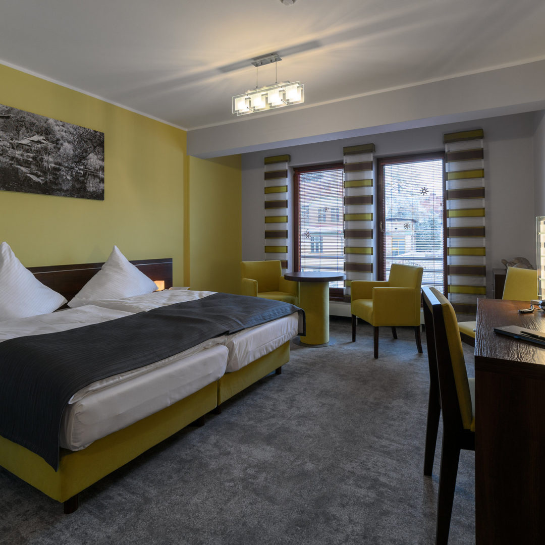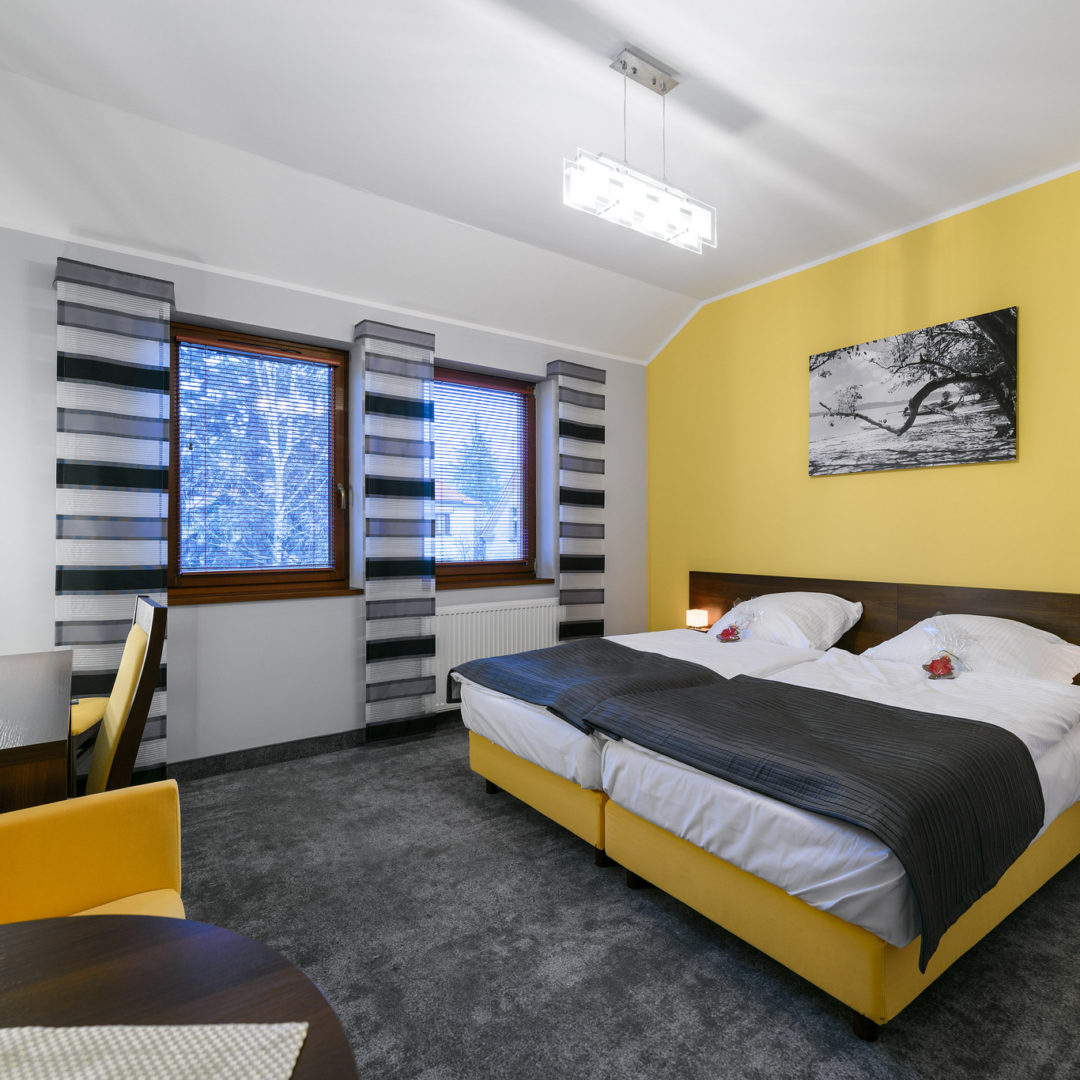 Pokoje 2-osobowe typu DELUX są wygodne i funkcjonalne, wyposażone są w 2 łóżka pojedyncze z możliwością połączenia (1,8m). Komfortowa łazienka z prysznicem i dużym lustrem. Istnieje możliwość wstawienia dostawki.